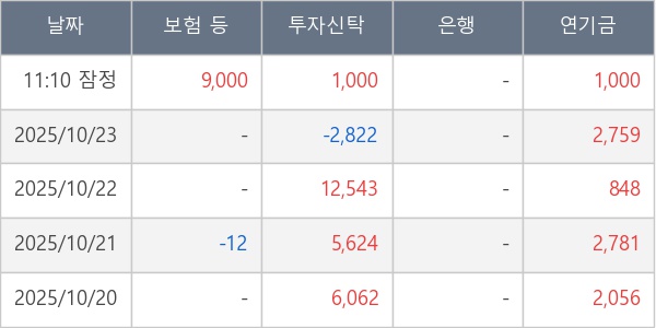 [표] 주요 기관별 순매매량 (단위 주)