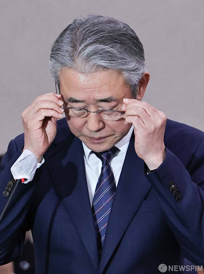 [서울=뉴스핌] 윤창빈 기자 = 강호동 농업협동조합중앙회장이 24일 오전 서울 여의도 국회에서 열린 농림축산해양수산위원회의 농업협동조합중앙회 등에 대한 국정감사에서 안경을 쓰고 있다. 2025.10.24 pangbin@newspim.com