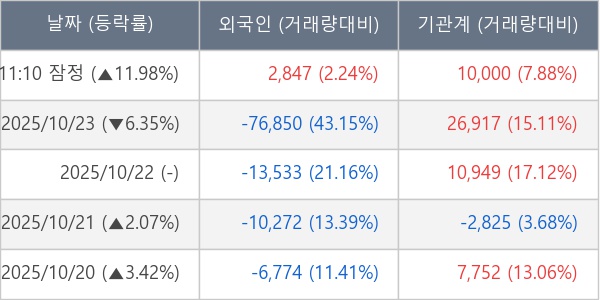 ※ 사모펀드 등 일부 기관의 순매매량은 표시되지 않음