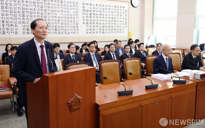 [서울=뉴스핌] 정일구 기자 = 이완규 전 법제처장이 24일 오전 서울 여의도 국회 법제사법위원회에서 열린 법제처에 대한 국정감사에서 증인선서 거부 의사를 밝히고 있다. 2025.10.24 mironj19@newspim.com
