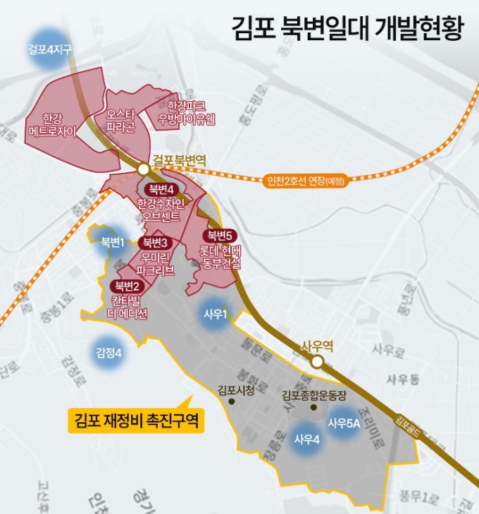[서울=뉴스핌] 오경진 기자 = 김포 원도심의 중심축인 북변·걸포 일대가 대규모 도시 정비 사업과 서울행 지하철 확충이라는 양대 호재를 동시에 맞으며 수도권 서북부의 새로운 주거 중심지로 변모하고 있다. 구도심의 탄탄한 생활 인프라 위에 신도시급 주거 타운이 들어서며 김포 도시 구조의 재편이 가시화되는 모습이다.