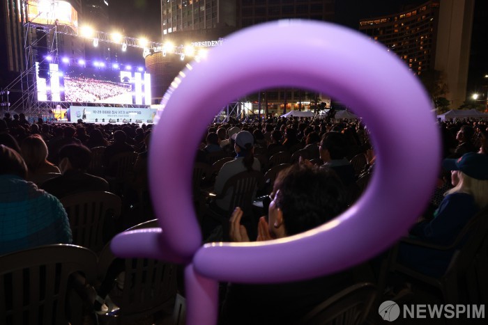 [서울=뉴스핌] 김학선 기자 = 25일 서울광장에서 10·29 이태원 참사 3주기 시민 추모대회가 열리고 있다. 2025.10.25 yooksa@newspim.com