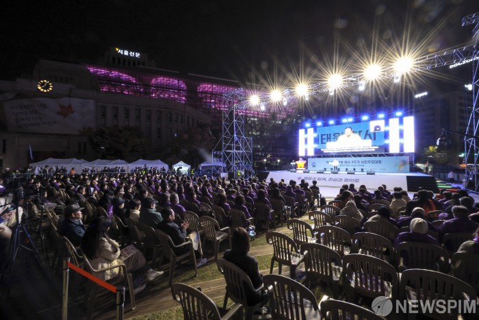 [서울=뉴스핌] 김학선 기자 = 25일 서울광장에서 10·29 이태원 참사 3주기 시민 추모대회가 열리고 있다. 2025.10.25 yooksa@newspim.com
