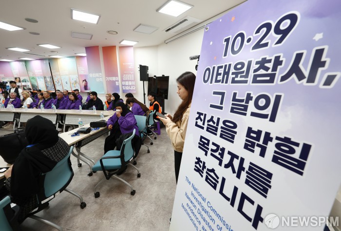 [서울=뉴스핌] 이길동 기자 = 26일 오후 서울 종로구 10.29 이태원참사 기억소통공간인 별들의집을 찾은 외국인 희생자 유가족들이 간담회를 하고 있다.2025.10.26 gdlee@newspim.com