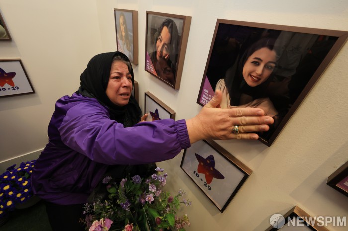 [서울=뉴스핌] 이길동 기자=26일 서울 종로구 별들의집에서 이태원 참사 희생자 외국인 유가족들이 고인의 사진을 어루만지고 있다.2025.10.26 gdlee@newspim.com