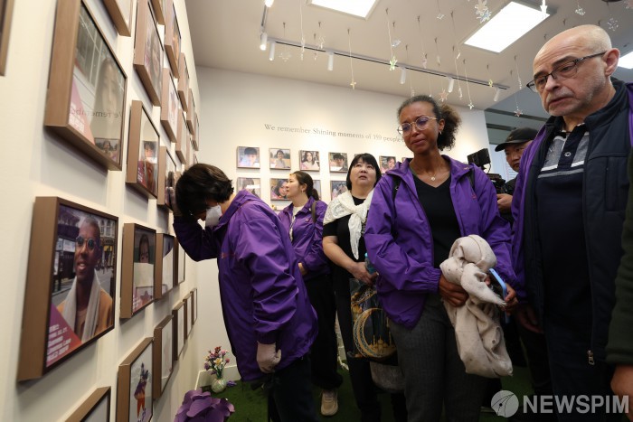 [서울=뉴스핌] 이길동 기자 =10·29 이태원참사 외국인 유가족이 26일 오후 서울 종로구 별들의 집에 방문해 희생자의 사진을 보고 눈물 흘리고 있다.2025.10.26 gdlee@newspim.com