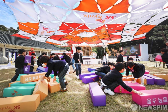 [서울=뉴스핌] 양윤모 기자 = 26일 오후 휴일을 맞아 '제24회 이천쌀문화축제'가 열리고 있는 경기도 이천시 이천농업테마공원을 찾은 어린이들이 하이닉스의 반도체 주제관을 체험하고 있다. '맛과 멋이 어우러진, 쌀로 잇는 즐거움'이란 주제로 열린 올해 축제는 다양한 참여 및 체험 행사와 전통 공연 등으로 화려하게 막을 내렸다. [사진=이천시청] 2025.10.26 yym58@newspim.com