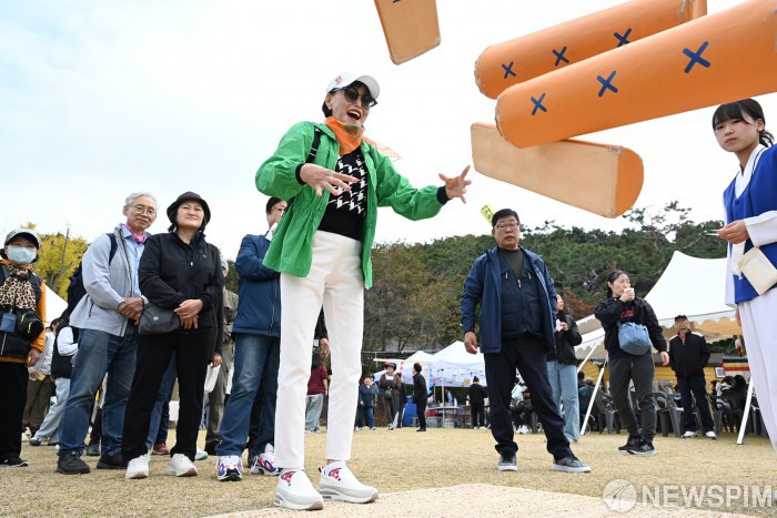 [서울=뉴스핌] 양윤모 기자 = 26일 오후 휴일을 맞아 '제24회 이천쌀문화축제'가 열리고 있는 경기도 이천시 이천농업테마공원를 찾은 방문객들이 윷놀이 게임을 즐기고 있다. '맛과 멋이 어우러진, 쌀로 잇는 즐거움'이란 주제로 열린 올해 축제는 다양한 참여 및 체험 행사와 전통 공연 등으로 화려하게 막을 내렸다. [사진=이천시청] 2025.10.26 yym58@newspim.com
