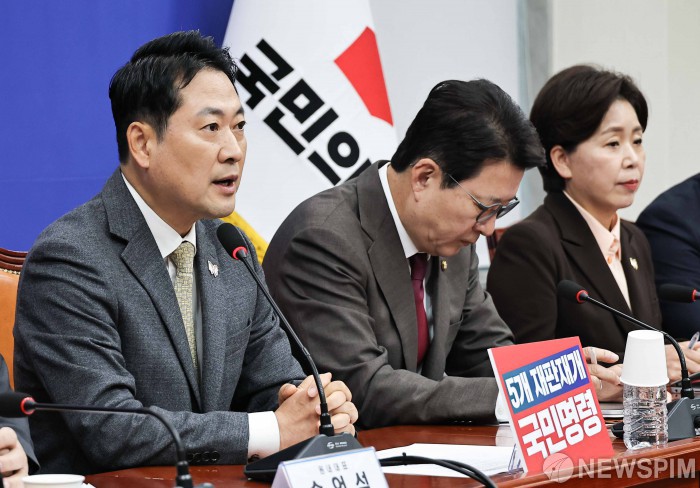 [서울=뉴스핌] 윤창빈 기자 = 장동혁 국민의힘 대표가 27일 오전 서울 여의도 국회에서 열린 최고위원회의에서 모두발언을 하고 있다. 2025.10.27 pangbin@newspim.com