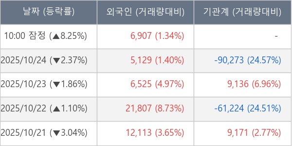 [표] 외국인ㆍ기관 순매매량 (단위 주)