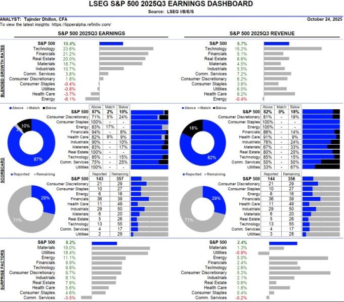 S&P500 기업의 3분기 실적 현황 대시보드 [자료=LSEG I/B/E/S]