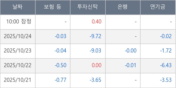 ※ 장중 매매동향은 잠정치이므로 실제 매매동향과 차이가 발생할수 있음