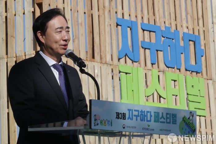 [서울=뉴스핌] 양윤모 기자 = 조대규 교보생명 사장이 27일 오후 서울 종로구 광화문광장에서 개최된 '지구하다 페스티벌'에 행사에 참석해 인사말을 하고 있다. 기후에너지환경부가 교보생명과 함께 올해 세 번째로 개최한 '지구하다 페스티벌'은 환경보전의 중요성을 알고(지, 知) 올바른 실천으로 지구를 구한다는 뜻을 담고 있으며, 탄소저감 및 친환경 실천을 체험하고 국민과 함께 소통하는 환경교육 축제의 장으로 펼쳐졌다. 2025.10.27 yym58@newspim.com