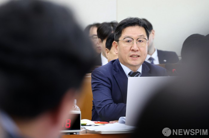 [서울=뉴스핌] 정일구 기자 = 성창훈 한국조폐공사 사장이 27일 서울 여의도 국회 기획재정위원회에서 열린 한국수출입은행 등에 대한 국정감사에서 의원 질의에 답하고 있다. 2025.10.27 mironj19@newspim.com