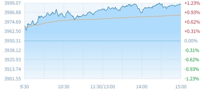 상하이종합지수는 1.18% 오른 3996.94포인트를 기록하며 2015년 7월 24일 이후 10년 만에 4000포인트 탈환을 목전에 뒀다.