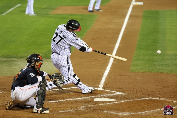 LG는 27일 서울 잠실구장에서 열린 한화와 한국시리즈 2차전 홈 경기에서 13-5로 역전승을 거뒀다. 역대 1·2차전을 모두 이긴 팀의 한국시리즈 우승 확률은 90.5%에 이른다.