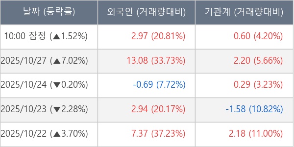 ※ 사모펀드 등 일부 기관의 순매매량은 표시되지 않음