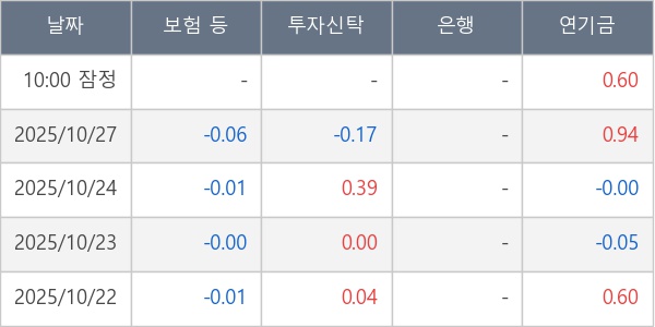 [표] 주요 기관별 순매매량 (단위 만주)