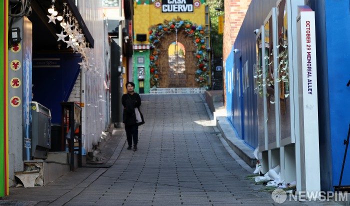 [서울=뉴스핌] 최지환 기자 = 10·29 이태원참사 3주기를 앞둔 28일 오후 서울 용산구 이태원역 '10·29 기억과 안전의 길'을 시민들이 오가고 있다. 2025.10.28 choipix16@newspim.com