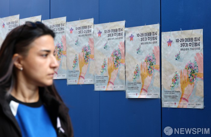 [서울=뉴스핌] 최지환 기자 = 10·29 이태원참사 3주기를 앞둔 28일 오후 서울 용산구 이태원역 '10·29 기억과 안전의 길'을 시민들이 오가고 있다. 2025.10.28 choipix16@newspim.com