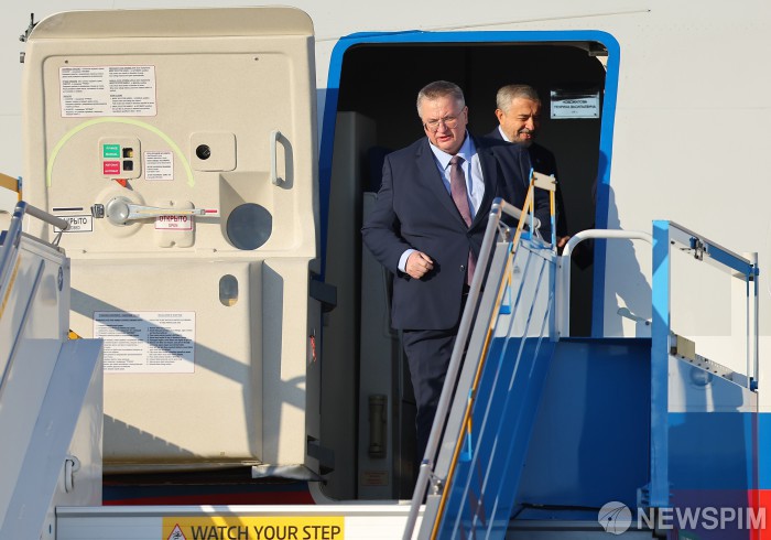 [서울=뉴스핌] 알렉세이 오베르추크 러시아 국제문제 담당 부총리가 29일 2025년 APEC 정상회의에 참석하기 위해 부산 김해공항에 도착하고 있다. [사진=APEC 2025 KOREA & 연합뉴스] 2025.10.29 photo@newspim.com