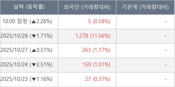 [표] 외국인ㆍ기관 순매매량 (단위 주)