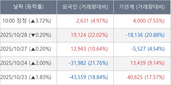 [표] 외국인ㆍ기관 순매매량 (단위 주)