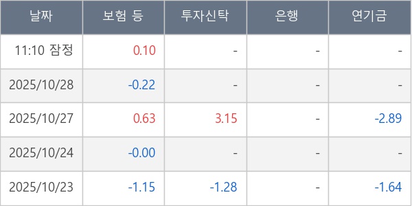 [표] 주요 기관별 순매매량 (단위 만주)