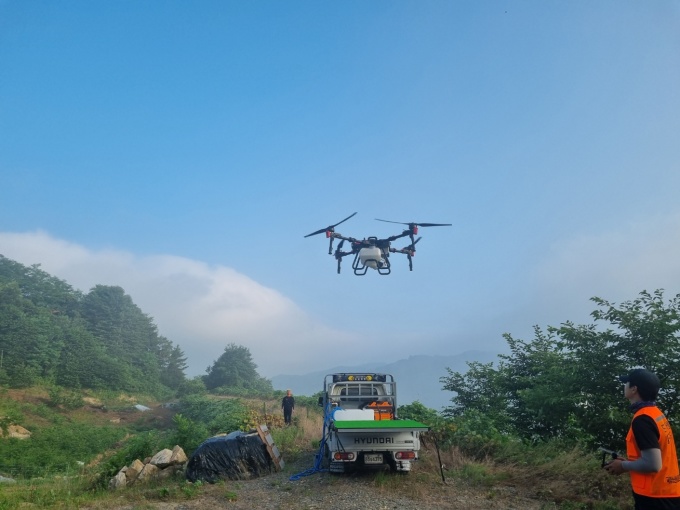 | 경남 하동군이 추진 중인 '밤나무 드론 방제사업' [사진=하동군] 2025.10.30 |