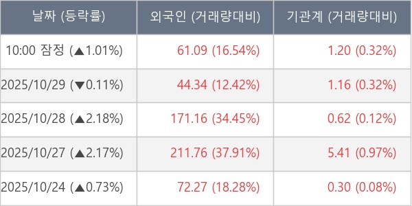※ 사모펀드 등 일부 기관의 순매매량은 표시되지 않음