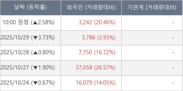 [표] 외국인ㆍ기관 순매매량 (단위 주)