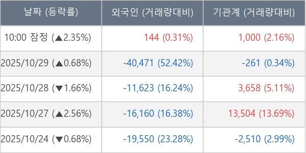 ※ 사모펀드 등 일부 기관의 순매매량은 표시되지 않음