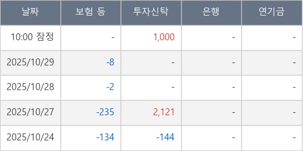 [표] 주요 기관별 순매매량 (단위 주)