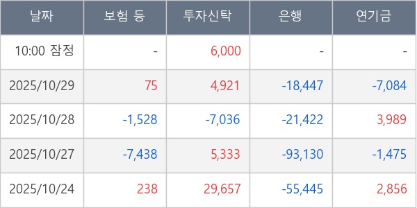 [표] 주요 기관별 순매매량 (단위 주)