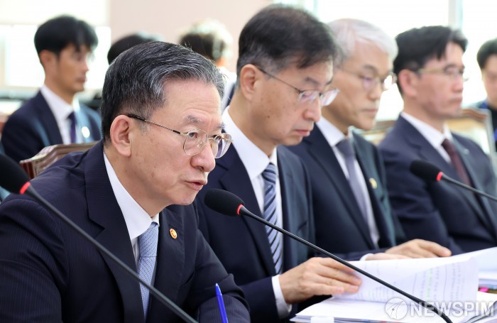 [서울=뉴스핌] 정일구 기자 = 정성호 법무부 장관이 30일 오전 서울 여의도 국회 법제사법위원회에서 열린 법무부 등에 대한 종합감사에서 의원 질의에 답하고 있다. 2025.10.30 mironj19@newspim.com