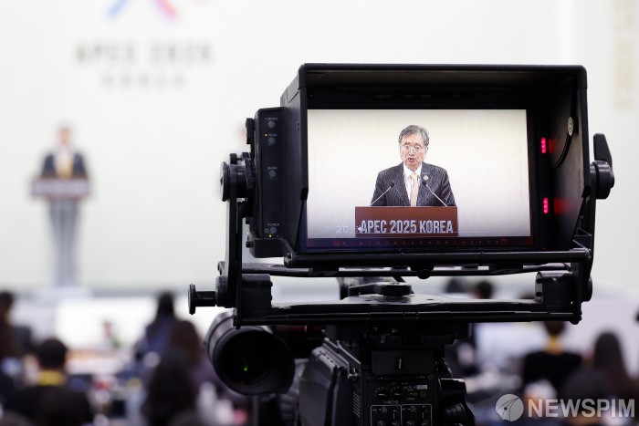 [경주=뉴스핌] 류기찬 기자 = 조현 외교부 장관이 30일 오후 경북 경주시 국제미디어센터에서 외교통상합동각료회의(AMM) 브리핑을 하고 있다. 2025.10.30 ryuchan0925@newspim.com