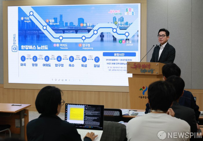 [서울=뉴스핌] 김학선 기자 = 박진영 서울시 미래한강본부장이 31일 서울시청에서 한강버스 운행 재개 관련 브리핑을 하고 있다. 안전 확보와 품질 개선을 위해 한달 동안 시민 탑승이 중단됐던 한강버스는 내달 1일 오전 9시부터 정식 운항을 재개한다. 2025.10.31 yooksa@newspim.com