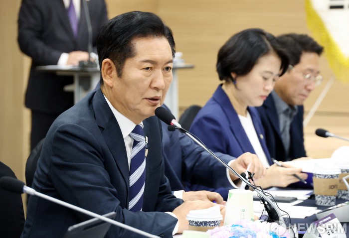 [서울=뉴스핌] 정일구 기자 = 정청래 더불어민주당 대표가 31일 오전 서울 마포구 상장회사회관에서 열린 더불어민주당-한국중견기업연합회 정책간담회에서 인사말을 하고 있다. 2025.10.31 mironj19@newspim.com