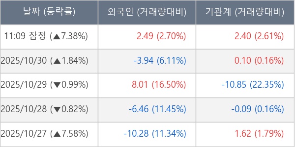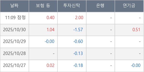 ※ 사모펀드 등 일부 기관의 순매매량은 표시되지 않음
