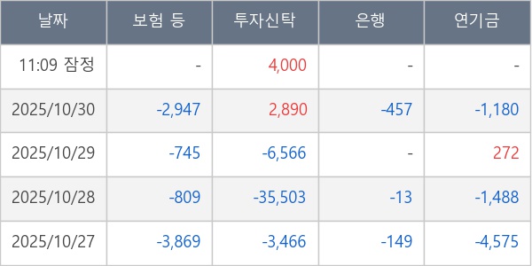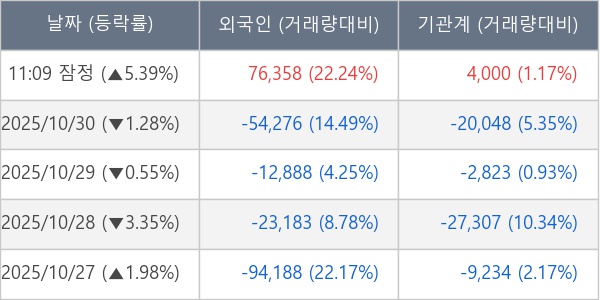 ※ 사모펀드 등 일부 기관의 순매매량은 표시되지 않음