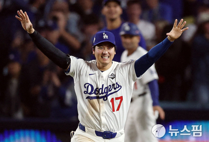 | [로스앤젤레스 로이터=뉴스핌] 장환수 스포츠전문기자= LA 다저스 오타니 쇼헤이가 28일 토론토와 월드시리즈 3차전에서 연장 18회 프레디 프리먼의 끝내기 홈런으로 승리가 확정되자 그라운드로 뛰쳐나오며 환호하고 있다. 2025.10.31 zangpabo@newspim.com |