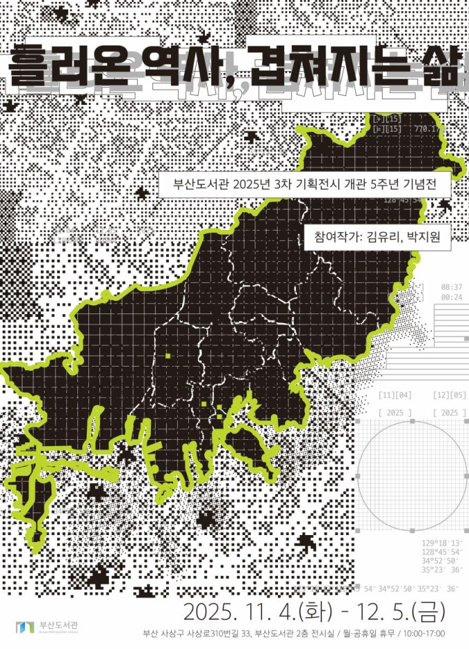 [부산=뉴스핌] 남동현 기자 = 부산도서관은 개관 5주년을 맞아 4일부터 12월 5일까지 2층 전시실에서 '흘러온 역사, 겹쳐지는 삶' 전시를 개최한다고 2일 밝혔다. 지역의 역사와 기억을 예술로 재해석한 자리다.