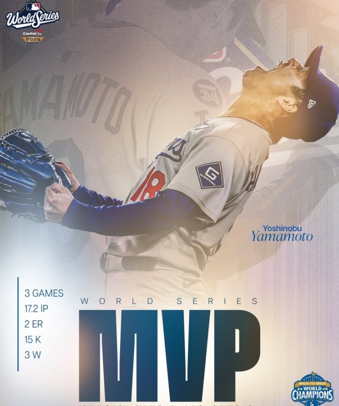 야마모토는 월드시리즈 MVP에 선정됐다. 일본인으로는 2009년 뉴욕 양키스의 마쓰이 히데키 이후 16년 만이다.