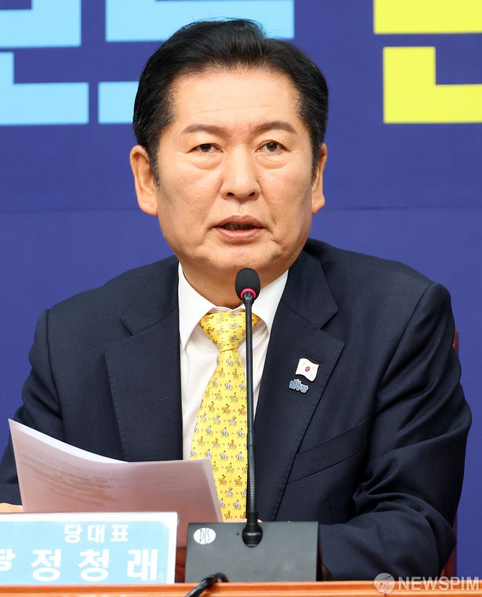 [서울=뉴스핌] 정일구 기자 = 정청래 더불어민주당 대표가 3일 오전 서울 여의도 국회에서 열린 최고위원회의에서 모두발언을 하고 있다. 2025.11.03 mironj19@newspim.com