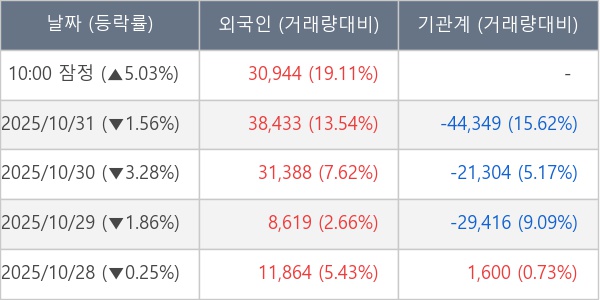 [표] 외국인ㆍ기관 순매매량 (단위 주)