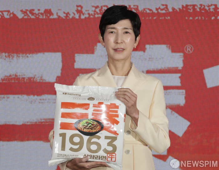 [서울=뉴스핌] 양윤모 기자 = 김정수 삼양식품 부회장이 3일 오전 서울 중구 보코 서울 명동 호텔에서 프리미엄 신제품 라면 '삼양 1963' 쇼케이스 행사장에서 포즈를 취하고 있다. '삼양 1963'은 1963년 출시된 삼양라면의 레시피를 현대적으로 재해석해 맛과 풍미를 종합적으로 향상시킨 프리미엄 라면이다. 2025.11.03 yym58@newspim.com