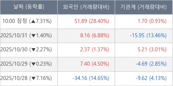 [표] 외국인ㆍ기관 순매매량 (단위 만주)