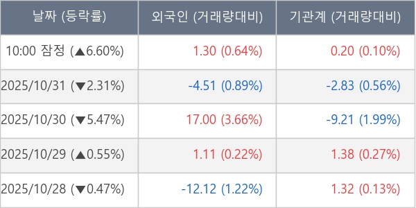 [표] 외국인ㆍ기관 순매매량 (단위 만주)