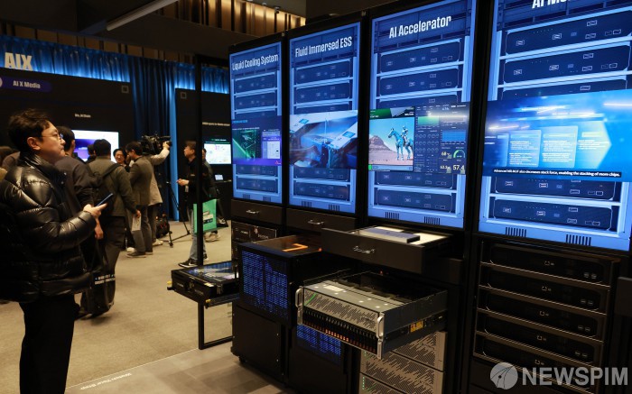 [서울=뉴스핌] 김학선 기자 = 3일 서울 강남구 코엑스에서 열린 'SK AI 서밋 2025'에서 참가자들이 부스를 둘러보고 있다. 2025.11.03 yooksa@newspim.com