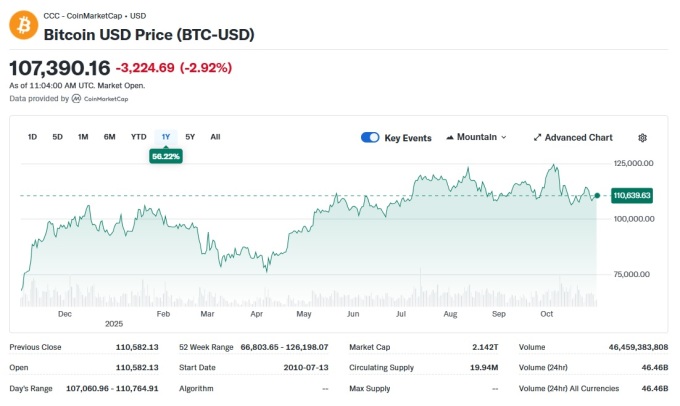 한국시간 오후 7시 55분 기준 비트코인(BTC) 가격은 24시간 전보다 3.0%가량 내린 10만7186달러선에서 거래됐고, 이더리움(ETH)은 3677달러로 4.8% 하락하고 있다.